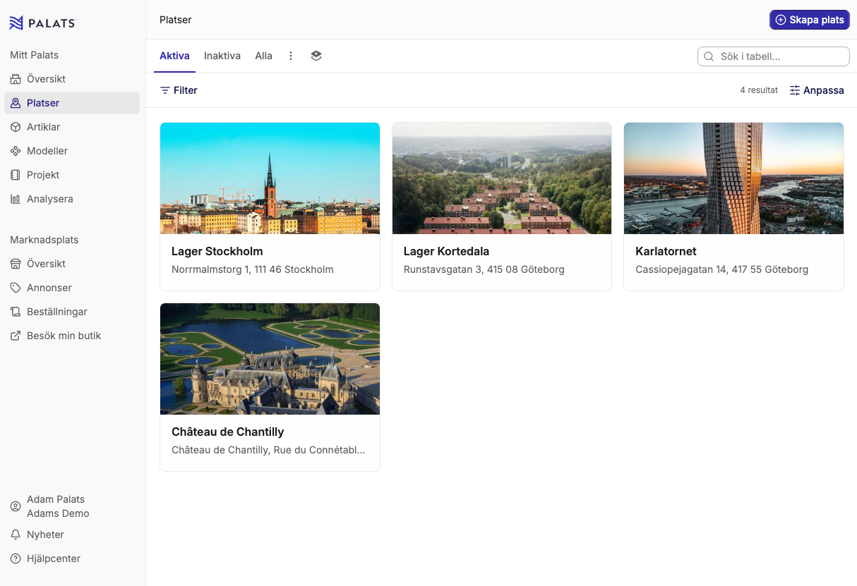 Fler inställningar, filtrera era platser, förbättrat orderplock, och enklare att hitta på marknadsplatsen. Det är de stora ändringarna i Palats under november månad.